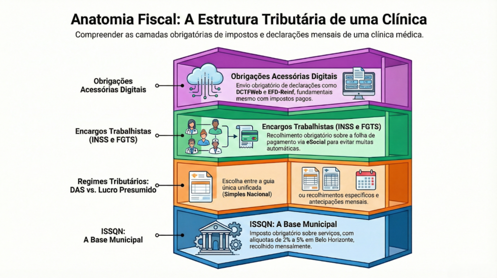 Por isso, a contabilidade e obrigações fiscais para clínicas em Belo Horizonte precisam considerar simultaneamente: